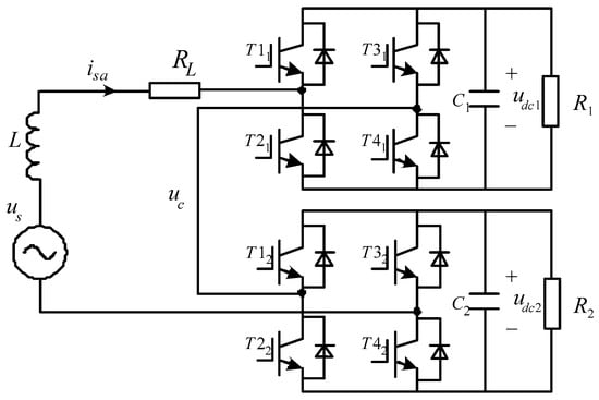 Figure 1 presents the topology of a two-cell CHB system in which us is the grid voltage, isa is the grid current, uc is the ac side voltage, L and RL denote the filter inductor and line resistance, respectively,. udc1 and udc2 represent the dc-link voltages of the first and second H-bridge, and udc_sum is the total dc-link voltage (udc1 + udc2). R1 and R2 are the resistive loads connected to the dc side of each H-bridge.