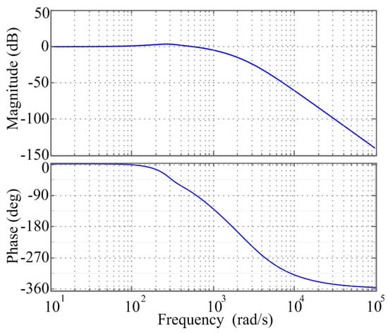 Because Z1 >> Zio, GG1M represents the gain in the basic double-loop controller with the dc-link voltage balance module from Equation (13); the Bode plot is shown in Figure 11. The amplitude margin is 12.7 dB, the cut-off frequency is 272 Hz, the phase margin is 105°, and the cross-over frequency is 78 Hz. All roots of (Zio/Z1 + 1 + GG1M) are on the left half-complex plane, ensuring stability of the system with the voltage balance control module.