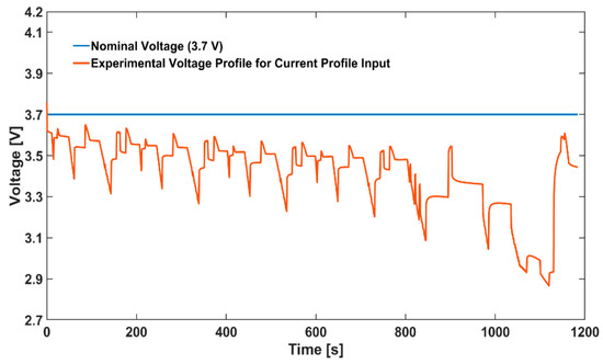 In Figure 9, the output voltage profile estimated by the 2nd order ECM is compared against the experimental voltage profiles for the current-based legislative drive cycles at 25 °C ambient temperature and 65% starting SOC. The normalized root-mean-squared-error (RMSE) in output voltage estimation averaged across the four legislative drive cycles was 11.8 mV, which is comparable with typical errors reported in the previous published reports [10,16].