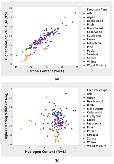 Some past studies have presented correlations for predicting the elemental compositions and HHV of raw biomass using proximate and ultimate analysis [10,11,12,13]. Parikh et al. [10] considered Volatile Matter (VM) and Fixed Carbon (FC) and proposed the following correlations: