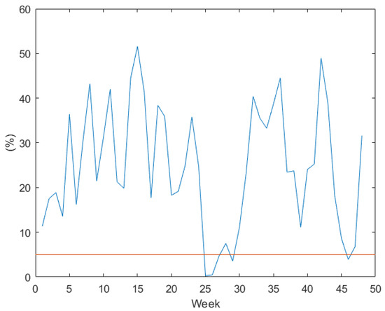 Figure 8 is the 5% weekly limit of allowed values that can exceed the range 49 to 51 Hz.