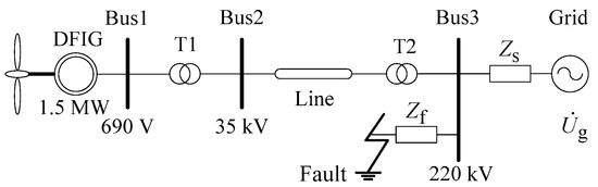 With the worsening global energy crisis and environmental pollution, renewable energy sources have received worldwide attention and undergone rapid development. The doubly-fed induction generator wind turbine (DFIG-WT) is one of the most popular wind turbine generators due to its low manufacturing cost, high efficiency, and high flexibility, and is extensively applied on wind farms [1,2,3]. In earlier studies, DFIG-WT was regarded as a load or synchronous generator for short-circuit calculation, as the capacity of wind farms is small [4,5]. However, with the increasing capacity of wind power access to the grid, the influence of the short-circuit current (SCC) of DFIG-WT can no longer be ignored. Since accurate SCC calculation is very important to protection settings [6,7], equipment selection, and the optimal design of wind turbine control strategies [8,9], transient characteristics analysis and the SCC calculation model for DFIG-WT have attracted the attention of researchers around the world in recent years.