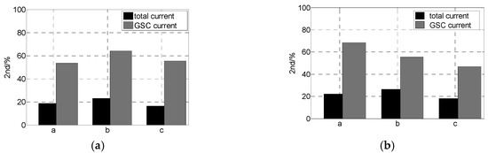 The second harmonic contents of the first cycle in the three-phase short-circuit current under two conditions are shown in Table 4. According to Table 4, the following conclusions can be drawn as follows:
