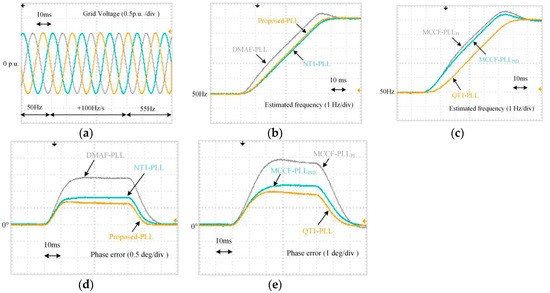 | Settling time of estimated frequency (2%) | ≈1.74 cycles | ≈2.6 cycles | ≈1.6 cycles | ≈1.3 cycles | ≈0.85 cycles | ≈0.7 cycles |
