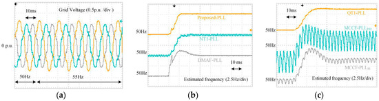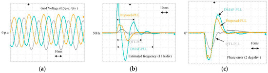 - To validate the effectiveness of the proposed method, a comprehensive experimental study is performed which considers many cases such as phase and frequency change, voltage sag and harmonic polluted grid voltages. The results show that the transient behavior lasts for nearly one grid period. Compared with QT1-PLL, the settling time is reduced by nearly 40%, which makes it fulfill the stringent transient response requirement in most grid standard [6,7].