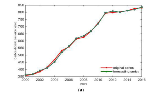 With the advancement of intelligent algorithms, scholars applied intelligent algorithms to predict carbon emissions. Fang et al. [24] used an improved Gaussian process regression method and particle swarm algorithm to predict carbon emissions. Through empirical analysis, it can effectively optimize the hyperparameter of the covariance function in Gaussian process regression. Zhao et al. [25] combined the mixed-data sampling (MIDAS) model and Back Propagation Neural Network (BPNN) to study effect of quarterly economic growth on annual carbon emissions. The empirical results show that economic growth must affect carbon emissions. Wen et al. [26] proposed a novel methodology-symbolic regression to investigate the relationship between carbon emissions and influential factors of Beijing and Tianjin and presented several policy suggestions. Chang et al. [27] used the quantum harmony search (QHS) algorithm to search the best beta value and optimized the average absolute error percentage (MAPE). The method predicted the carbon emissions from the world’s top five carbon emitters. Sun et al. [28] forecasted carbon emissions by regularized extreme learning machine (RELM) with principal component analysis (PCA) method based on the data of China during 1978–2014. The results show that RELM approaches saved computing time compared to Back Propagation Neural Network (BPNN). Zhao et al. [29] proposed a Least squares support vector machine optimized by Singular Spectrum Analysis (SSA-LSSVM) model which had a better forecasting performance compared with single Least squares support vector machine (LSSVM) model, Least squares support vector machine optimized by Particle Swarm Optimization (PSO-LSSVM) model and BPNN model. Zhou et al. [30] constructed a combined forecasting model based on the Rough Set and Grey prediction model as well as support vector machine (SVM) model to forecast carbon emissions from 2012 to 2017 based on the data of the Chinese carbon emissions from 1992 to 2011. The results show that the combined method could effectively analyze Chinese future carbon emissions.