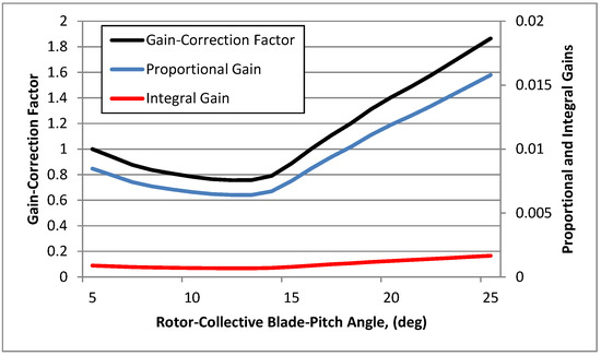 The conceptual controller described here was developed by the University of Stuttgart using a linearised model following the method reported in [16]. The PI design strategy is based on the platform-pitch mode closed-loop pole placement using the SLOW model, where its pole in the closed-loop is set such that the real part is always in the complex left-half plane for all wind speeds. This method results in a gain-scheduling which ensures the stability of the platform at all operating conditions. Figure 7 shows the PI controller values implemented for this DTU 10 MW wind turbine mounted on the TripleSpar platform. The non-linear gain scheduling is realized with a lookup table. The generator torque is kept constant in the pitch control region.
