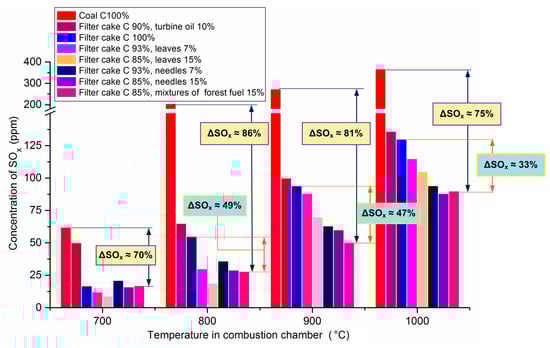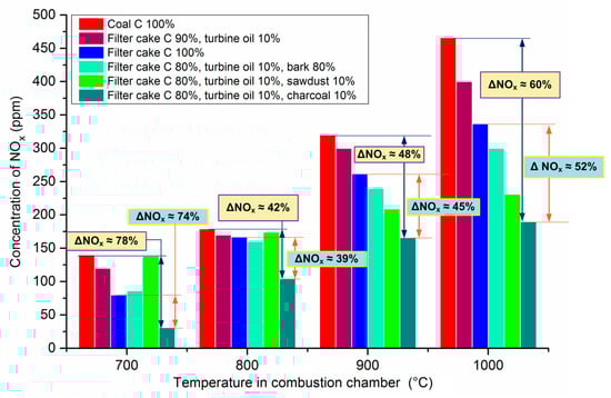 - The vast majority of the results indicate a significant reduction in the amount of emissions due to the involvement of biomass additives in the power generation process. Thus, the use of forest fuels (leaves, needles, sawdust, and bark) reduces sulfur oxide concentration by 2–5 times, nitrogen oxides by 1.5–2 times (depending on the chosen concentration and temperature conditions of fuel combustion) versus coal or CWSP without additives. Moreover, this type of forest biomass is a cheap and renewable energy source formed in large amounts in forests and in timber processing.