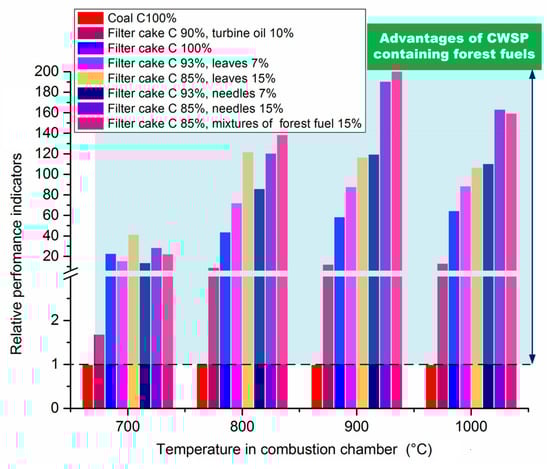 - The calculated complex indicators Drelative takes into account the energy, economic and environmental aspects of using composite fuel liquids. It illustrates the obvious advantages of CWS and CWSP containing leaves and needles. Drelative for these compositions is 1.2–10 times as high as the same indicator for CWS based on filter cakes and CWSP based on filter cakes and 10% of turbine oil. Drelative for fuel samples with sawdust or bark also demonstrates the benefits of biomass additives and exceeds the values of normal CWSP without dopants by 1.2–2.5 times.