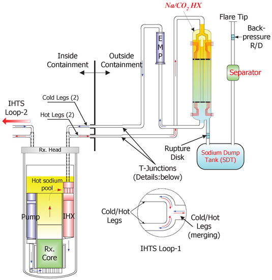Contrary to the benefits of SFRs, sodium, which is a highly reactive metal, can cause a fire when it reacts with water. One of the critical accidents in Sodium-cooled Fast Reactors (SFRs) is a potential sodium fire or sodium-water reaction (SWR). SWR occurs in a steam generator (SG) unit where hot sodium coolant of the intermediate heat transport loop (IHTS) in an SFR exchanges heat with water to generate steam for the turbine input (refer to Figure 1). Sodium reacts rapidly with steam/water, generating heat and pressure impulses that can lead to the catastrophic failure of an SG unit and intermediate sodium loop by over-pressure and temperature transients.