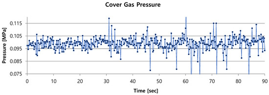 The average temperature of the cover gas region is 286 K. In order to take advantage of the test facility, the monitoring scheme is constructed to compare the cover-gas pressure with its statistical mean , and from Equation (11) the residual becomes