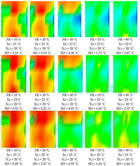 - Ambient air temperature (Ta): the experiment was conducted at three different ambient temperatures (21 °C, 23 °C, and 25 °C).