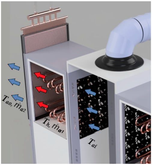 where QH represents the heaters’ power into the data rack. As can be seen in Figure 8, air temperature and air flowrate changed after exiting the thermosiphon. Accordingly, the amount of heat absorbed by the thermosiphon can be calculated as,