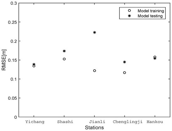 | Stations | RMSE [m] | MAPE [%] [-] | D [-] | |||