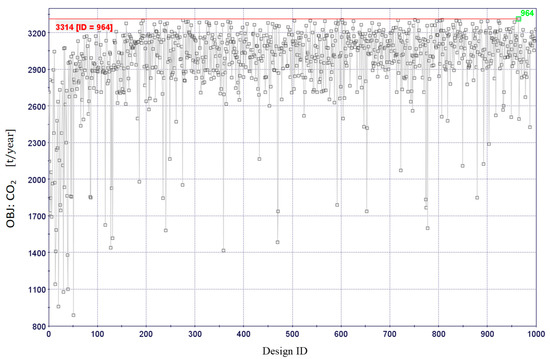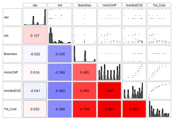 The optimal solution contains not only the minimum total annual cost allowed by the configuration variables introduced for each individual, but also the equivalent CO2 emissions and therefore the avoided emissions, with respect to the conventional solution for energy supply. The optimized variable assignment in the inner level is sent back to the outer level to allow the genetic algorithm to determine whether a solution is suitable for guiding the creation of the next generation of solutions, as well as the quantitative indexes of each solution (these indexes are then summarized in the scatter matrix and in the probability density function charts, presented in the following Section 5). The entire loop is repeated until the termination criterion is reached, i.e., when a further evolution of the population does not obtain any appreciable performance improvement, indicated as stop condition in Figure 5. It is worth noting that more than one objective function can be used to evaluate the individual performance, allowing to highlight different convergence stories and to identify the Pareto front. In this case study one second objective function (besides the total annual cost) have been considered: the avoided CO2 emissions during the year (to be maximized), in order of measuring the environmental impact of the modeled system.