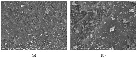 SEM images of (a) HNO3-treated Activate Carbon (NAC); (b) Mn (0.03)/NAC.