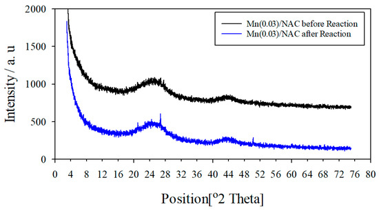 XRD pattern of Mn (0.03)/NAC catalyst before and after reaction testing.