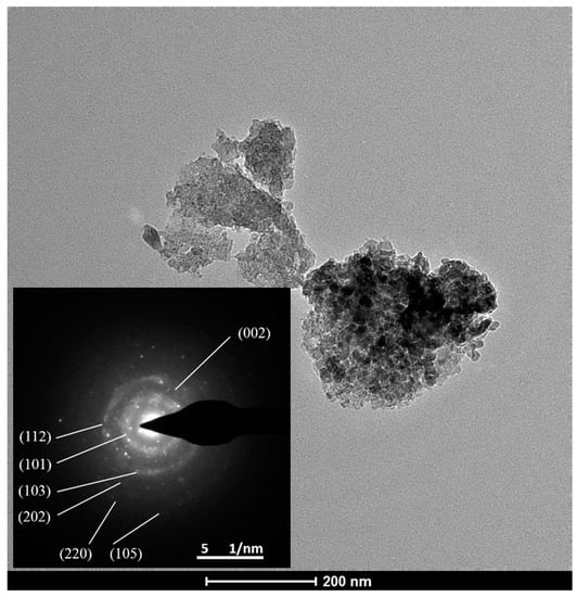 TEM-SAED result of Mn (0.03)/NAC after reaction.
