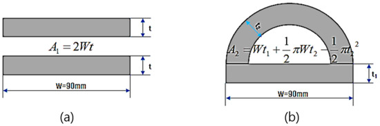 In order to develop a bus-bar design indicating optimal heat dissipation characteristics, the case study for the cross-sectional shapes of tunnel-type bus-bar was performed. The cross-sections of plate-type and tunnel-type bus-bars are shown in Figure 1, and the cross-sectional areas are calculated using Equations (1) and (2).