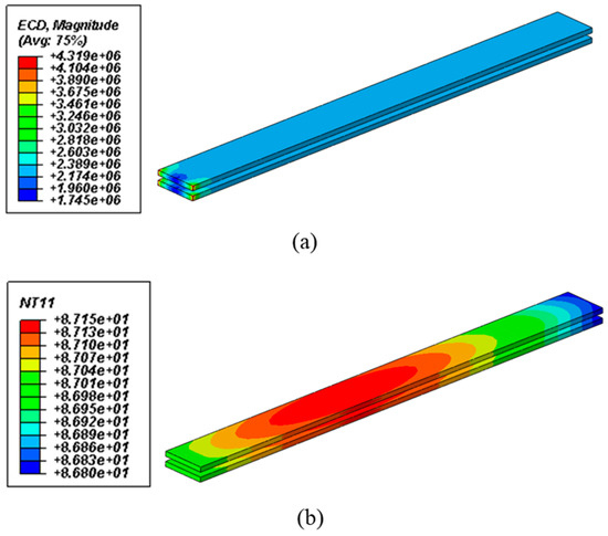 Results of the electromagnetic and thermal analysis for plate-type bus-bar: (a) Current density; (b) thermal gradient.