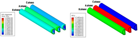 - Labridis, D.P.; Dokopoulos, P.S. Electromagnetic forces in three-phase rigid busbars with rectangular cross-sections. IEEE Trans. Power Deliv. 1996, 11, 793–800. [Google Scholar] [CrossRef]