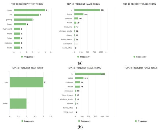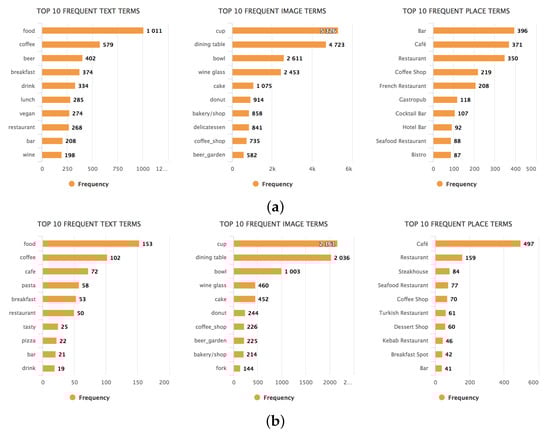 We define a dictionary as a set of terms related to a specific energy-consuming activity type—e.g., ingredients or cooking utensils are associated with the food consumption category. Thus, each category of energy-consuming activities has a distinct dictionary. The basic idea is to compare the terms extracted from the message (text tokens), image (annotations), and place (categories) to the terms in the dictionary. For now, a distinct dictionary for each of these types of data is constructed. Undoubtedly, this comes with some hassle but it also rules out ambiguity to some extent—e.g., the text token “tram” might infer a mobility activity whereas the image annotation “tram” could also point at some tram in the background which might not be related to the user’s activity.