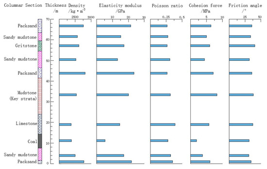 Dong Ping Coal Mine is located west of Mt. Taihang with a typical rolling terrain. The first backfill panel was 15,061, the average length along the strike direction was 286 m and the average width along the dip direction was 84 m. The panel is mined in the #15 coal seam, a lower segment of the Taiyuan group which has an average height of 6.8 m. The average depth of the coal seam is 160 m. The mining was conducted in the lower part of the coal seam with 3.0 m height and the remaining 3.8 m served as the immediate roof. The backfill material was selected as gangue. The bore hole columnar section and the rock stratum’s basic mechanic properties tested in laboratory are shown in Figure 6.