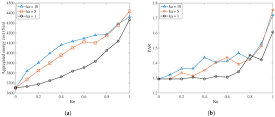 Impact of for . (a) Aggregated energy cost of the community; (b) PAR of the community.