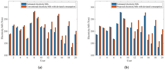 User’s electricity bill with consumption deviation. (a) Conventional billing mechanism; (b) Proposed billing mechanism.