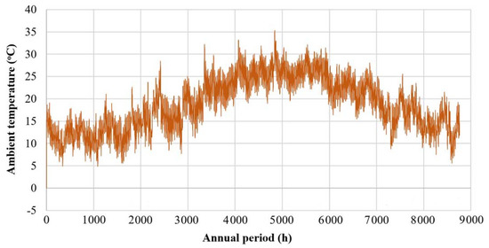 In Figure 5 the annual time series of the ambient temperature is presented, as measured by the above mentioned meteorological mast. The annual temperature and solar radiation time series will be employed in this work for the calculation of: