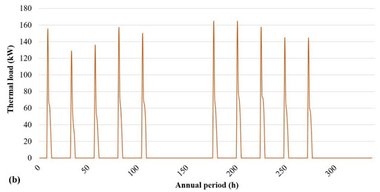 Thermal power production synthesis from the solar-combi system components for (a) the period from 1/1 to 15/4 and (b) the period from 15/10 to 31/12.