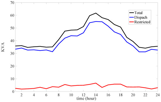 Table 4 shows the result of the optimization algorithm that defines the levels to which the energy transfer of each DG installed in the microgrid under study must be adjusted, where EDR indicates the total kVA energy that will be restricted to the demand in each of the lapses, indicates the quantity of demand that will restrict the client . In the same way in Table 5 the results of the process for the EDR program are shown where refers to the USD monetary bonus that the client will receive for the aforementioned action.