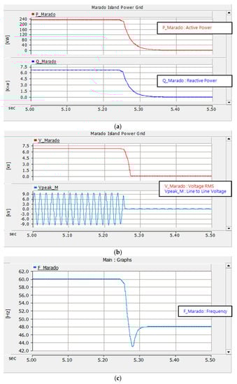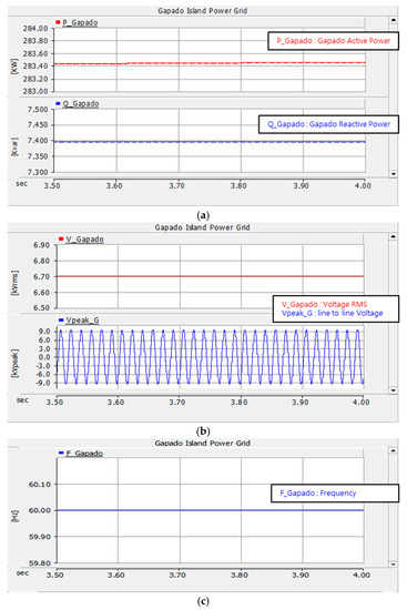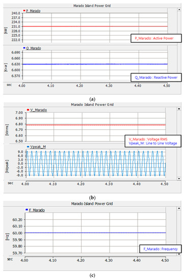 Figure 9a–c show the Marado Island grid waveform at steady state. Table 1 shows the criteria for normal conditions: