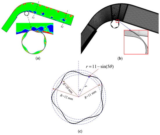 To obtain the characteristics of traveling wave wall control, the unsteady flow separation in a curved diffuser with rigid traveling wave wall control is numerically simulated. The adopted diffuser and rigid wave wall are illustrated in Figure 1a.