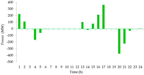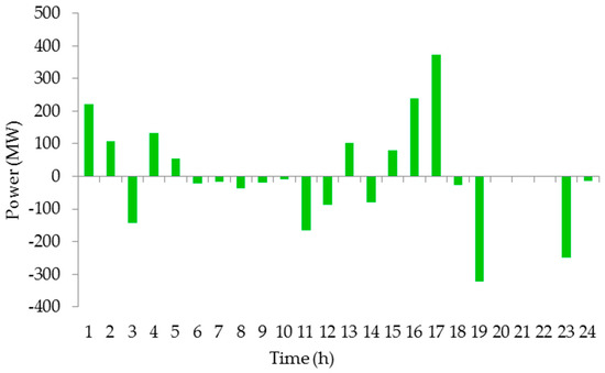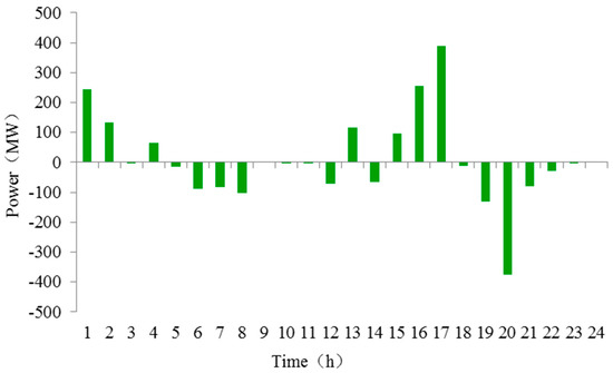 The power outputs of thermal generators based on the SampEn in Case 4 are shown in Figure 19. The power outputs of pumped storage are shown in Figure 20, where the positive power means the operation state is as loads absorbing power from grid and the negative power means the operation state is generating power. The power output comparisons of pumped storage in Case 3 and Case 4 are shown in Figure 21.