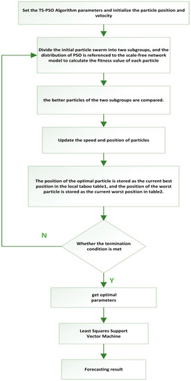 The flowchart of Least Squares Support Vector Machine Optimized by TS-PSO Algorithm (TS-PSO-LSSVM) is shown in Figure 2.