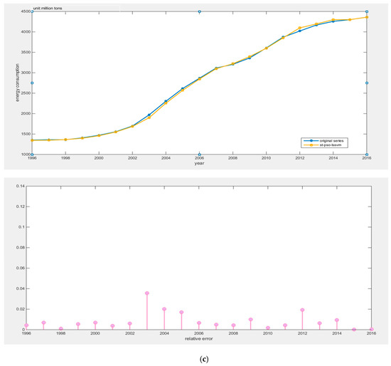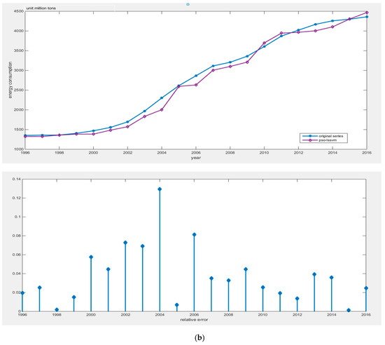 (2) This article innovatively applies the Tabu search algorithm to optimizing the PSO-LSSVM algorithm. The combined forecasting model greatly improves the search ability of parameters and reduces the search time, then, it can avoid local optimal results. The empirical analysis proves that the TS-PSO-LSSVM model has strong generalization ability and can reliably forecast China’s energy consumption, and its prediction accuracy is better than PSO-LSSVM and LSSVM.