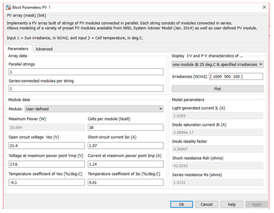 - Bellia, H.; Youcef, R.; Fatima, M. A Detailed Modeling of Photovoltaic Module Using MATLAB. NRIAG J. Astron. Geophys. 2014, 3, 53–61. [Google Scholar] [CrossRef]