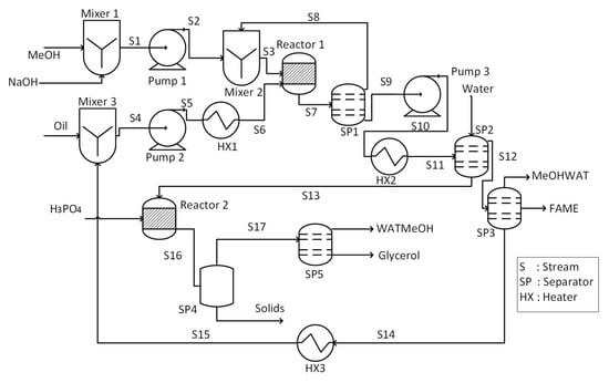 Process flowsheet of biodiesel production from vegetable oil.