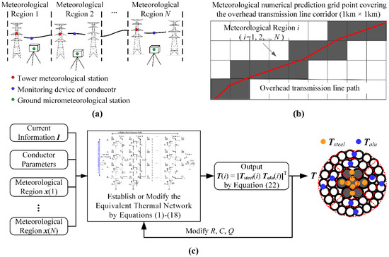DTLR calculation models are mostly constructed on the basis of IEEE and CIGRE standards [17,18], which simplify the heat transfer of conductor and treat the conductor as an isothermal body to obtain its surface or average temperature. Although DTLR models can reflect the electro-thermal coupling effect of transmission line under steady ambient meteorological conditions, it cannot characterize the difference in conductor inner transient temperature rise responses [19,20,21].