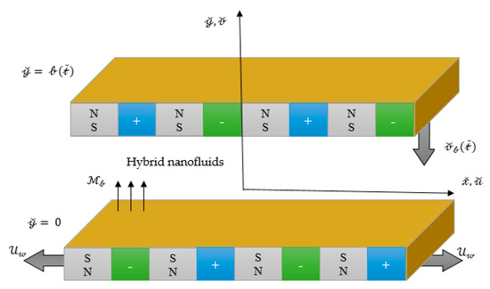 Moreover, the constants and , embroiled in the governing dimensionless model, can be mathematically stated as: