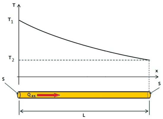The heat flux transferred via conduction was neglected based on the above analysis. If the pipe is well isolated and assuming the stable temperature at the ends of the pipe (see Figure 4), the conducted axial heat flux can be calculated from the following equations [22,23]: