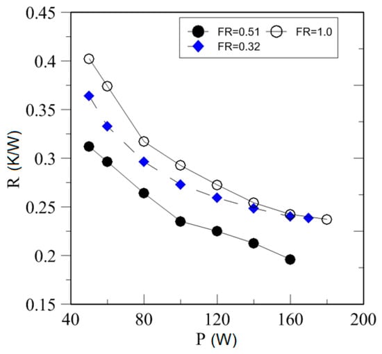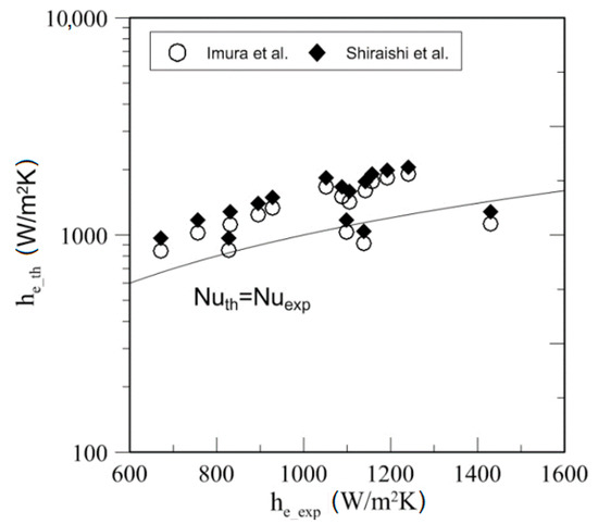 The heat flux value generated by the electric heater was calculated from Ohm’s law, as given by Equation (3). The heat absorbed by the cold water could be calculated using Equation (4).