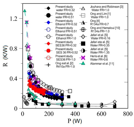- Ong, K.S.; Goh, G.; Tshai, K.H.; Chin, W.M. Thermal resistance of a thermosyphon filled with R410A operating at low evaporator temperature. Appl. Therm. Eng. 2016, 106, 1345–1351. [Google Scholar] [CrossRef]
