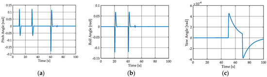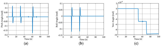 Tracking performance of Euler angles: (a) Pitch angle; (b) roll angle; (c) yaw angle.
