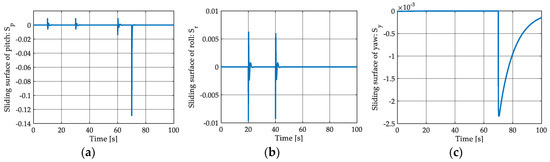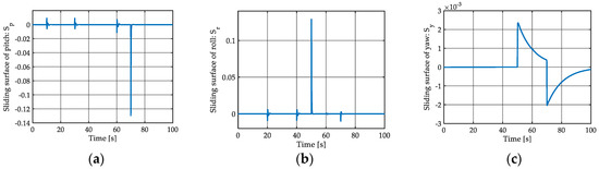 Sliding surface: (a) Pitch angle; (b) roll angle; (c) yaw angle.