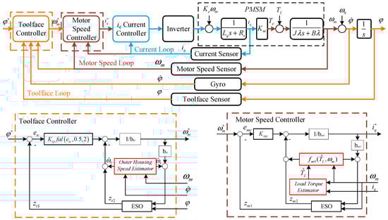 The q–axis current, motor speed, and toolface are controlled separately using a three–loop compound structure. In this way, we reduce the stabilized platform to three first–order objects, and then, the MADRC algorithm is applied in the motor speed loop and toolface loop to achieve high dynamic performance in the overall operating range.