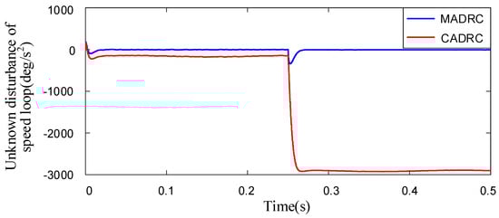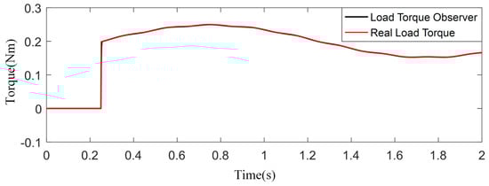 The ESO estimated unknown disturbances of MADRC and CADRC are shown in Figure 8. It can be seen that the unknown disturbance of MADRC is much smaller than that of CADRC, which means the ESO estimation burden is reduced as desired. The load observer output is also compared with the load torque in Figure 9, and the observer output follows the load torque well.