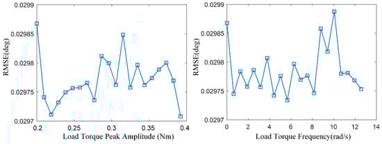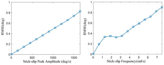 For the sake of simplicity, the sinusoidal wave shown in (30) was used to simulate stick-slip, and then, the toolface tracking RMSEs in the presence of outer housing speed disturbance were obtained: