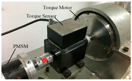 The outer housing speed disturbance was added by changing the outer housing motor speed, and the load torque disturbance was tested by the equipment shown in Figure 19. The PMSM connects to the torque motor by a spline coupling, the constant load torque is generated by a torque motor and measured by the torque sensor. In the DPRSS prototype experiment, all the controller parameters were the same as the ones used in the simulation.